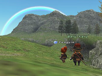 虹の見える中、ラテーヌでフェローのバルさんと、羊とか、カニとか、ゴブとか、ミミズとかをバシバシしばいてたら、忍者のLVが15になりました。